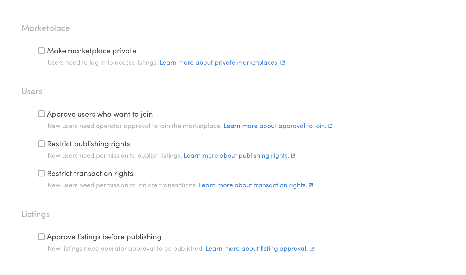 Toggling this setting in Console will require users to be approved by an operator to join the marketplace.