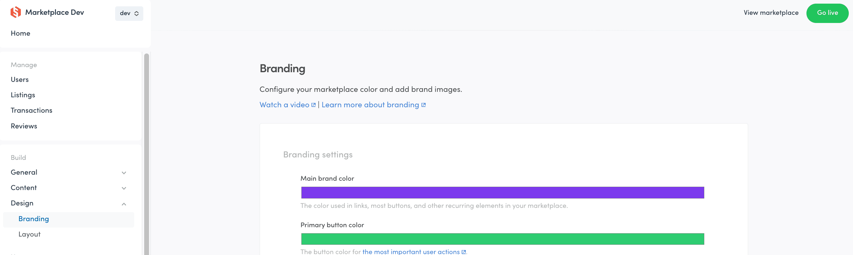 You can now continue to develop your marketplace with the same configurations you set up in Test!